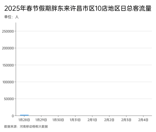 河南移動梧桐大數據顯示,2月2日至4日,胖東來許昌市區(qū)10店地區(qū)日均總客流量為假期前五天的3倍多。