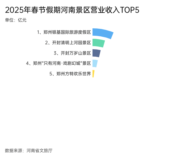 河南省文旅廳數據顯示,春節(jié)假期八天,全省營收上億元的景區(qū)僅有兩家,分別是鄭州銀基國際旅游度假區(qū)1.43億元,開封清明上河園景區(qū)1.03億元。