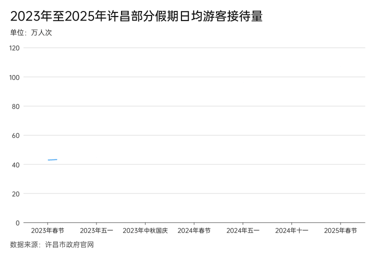 許昌市政府官網數據顯示,2023年下半年以來,主要節(jié)假日期間,全市日均游客接待量保持在100萬人次左右。