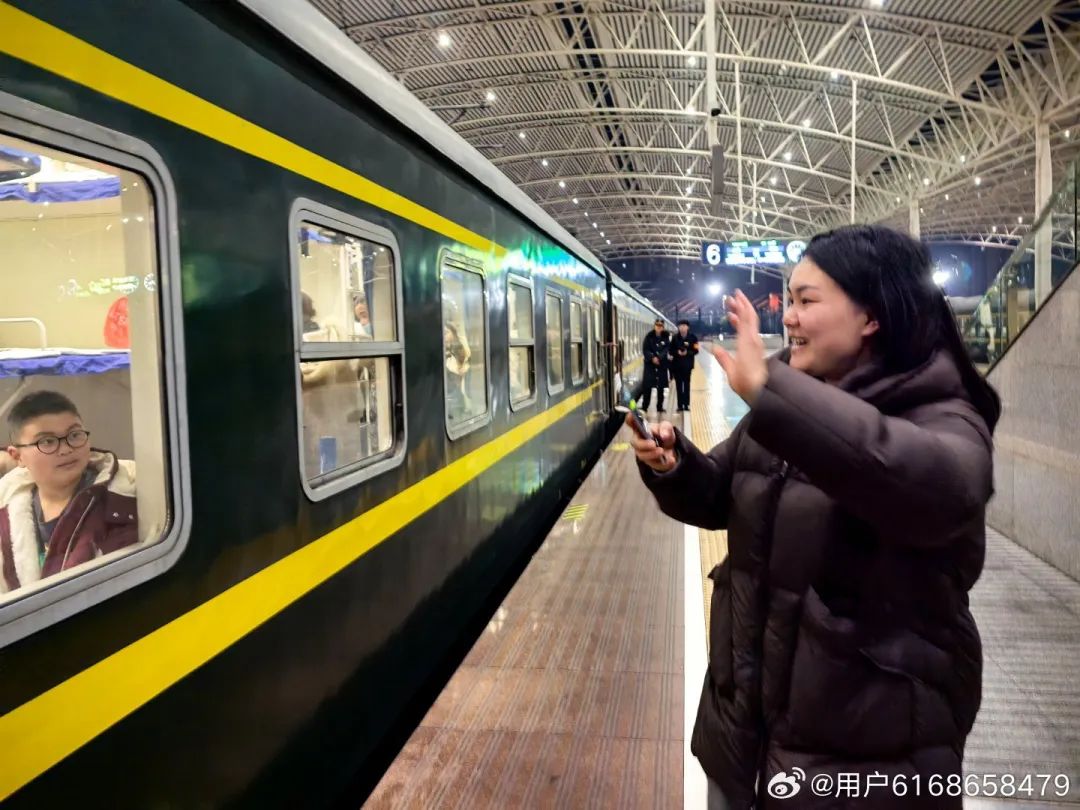 母親輕輕地?fù)]了揮手,目送心中的牽掛踏上歸途的列車。
