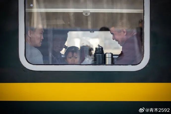 烏魯木齊至沈陽(yáng)的T304次列車,途經(jīng)巴彥淖爾站時(shí),小女孩看著窗外,爺爺疼愛地看著孫女。