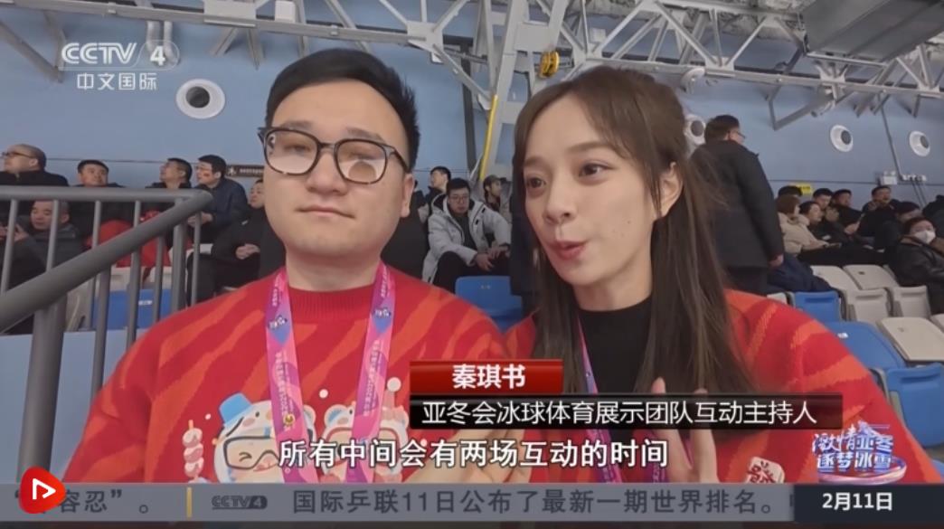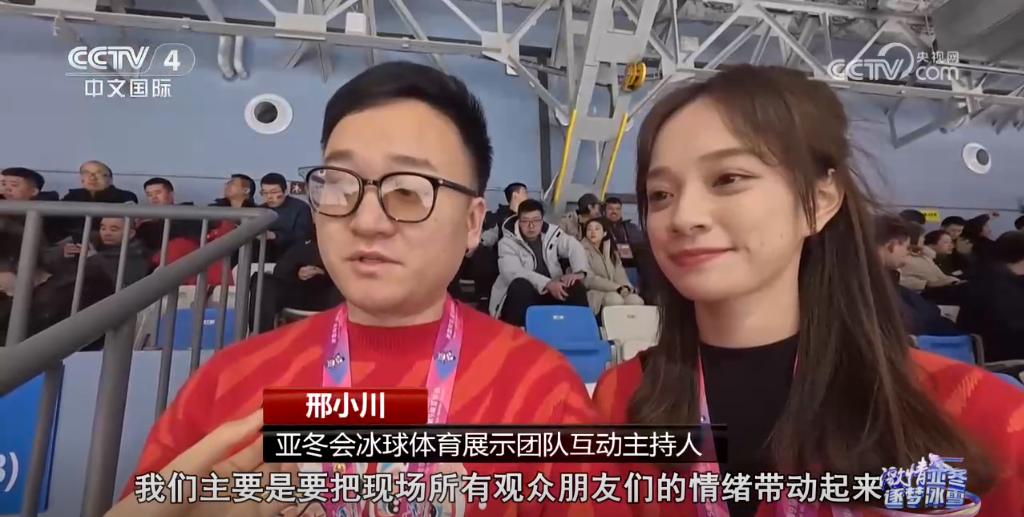 亞冬會(huì)冰球體育展示團(tuán)隊(duì)互動(dòng)主持人邢小川介紹,他們主要是帶動(dòng)所有觀眾朋友的情緒,給大家營(yíng)造濃郁的現(xiàn)場(chǎng)氛圍,可以通過(guò)大屏幕互動(dòng),給大家?guī)?lái)更好的觀賽體驗(yàn)。
