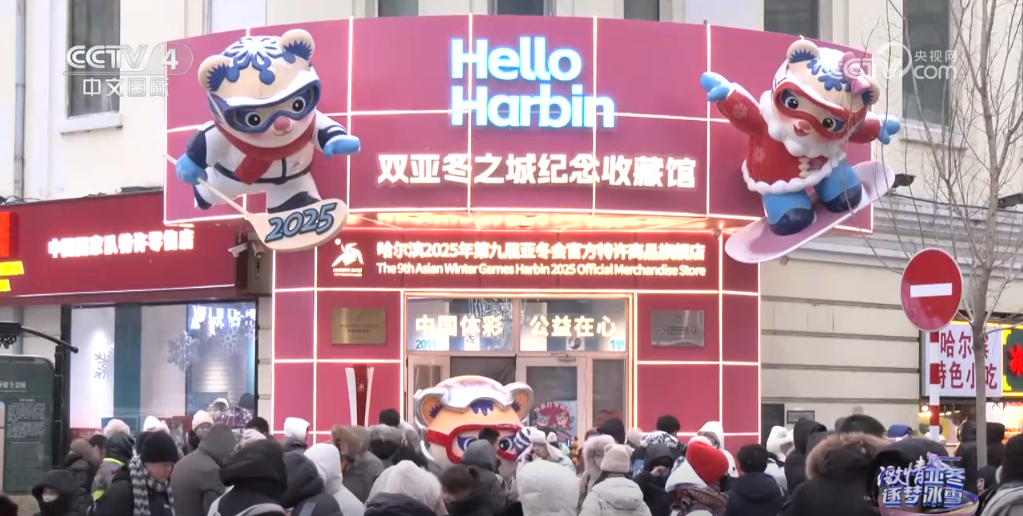 來(lái)到哈爾濱的中央大街,在記者背后能看到的就是一家亞冬會(huì)的官方特許商品旗艦店。隨著亞冬會(huì)的召開(kāi),這里的人氣變得越來(lái)越旺了。