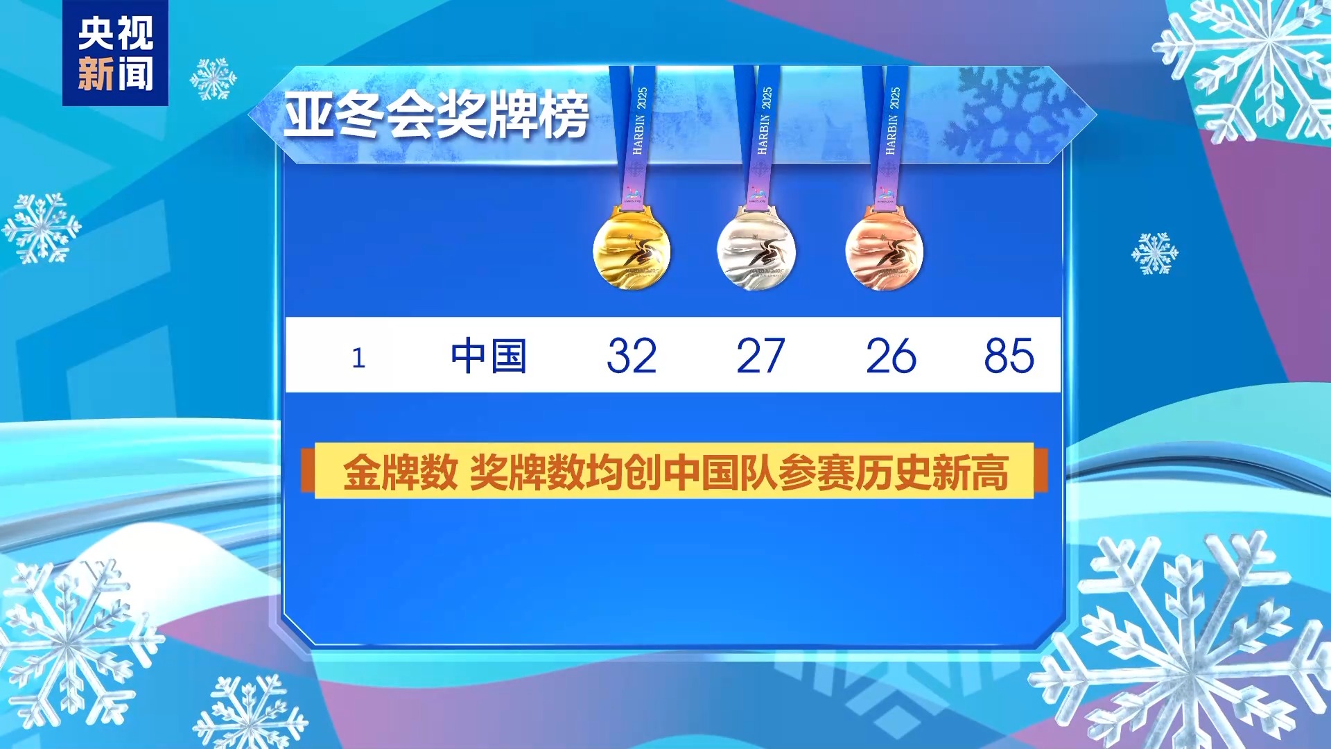 在本屆亞冬會(huì)上,中國隊(duì)不僅牢牢位居金牌榜、獎(jiǎng)牌榜雙榜榜首,金牌數(shù)、獎(jiǎng)牌數(shù)也均創(chuàng)中國隊(duì)參加亞冬會(huì)比賽以來歷史最好成績,續(xù)寫了中國冰雪運(yùn)動(dòng)新的篇章。
