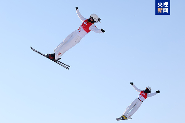 在自由式滑雪女子空中技巧雙人同步決賽中