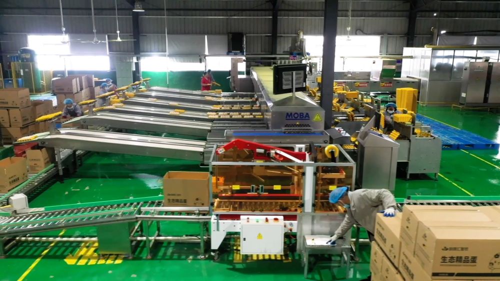 在湖北建始的一處養(yǎng)殖基地內(nèi),一枚枚當(dāng)天產(chǎn)的新鮮雞蛋通過流水線不斷傳輸。經(jīng)過分揀、殺菌、打包、裝箱的雞蛋將被發(fā)往江蘇、浙江等地。