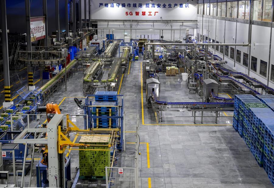 這是盼盼食品集團的5G智慧工廠飲料自動化生產(chǎn)車間(2024年8月23日攝)。盼盼食品集團年營收81億元,產(chǎn)品遠銷50多個國家和地區(qū)。新華社記者 魏培全 攝