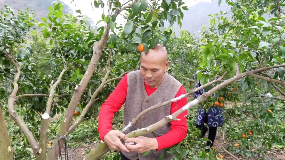 在大山深處,同樣火熱的生產(chǎn)在田陽區(qū)五村鎮(zhèn)洞琴村上演。農(nóng)戶們正在加緊嫁接新芽,將沃柑換種為金秋砂糖橘。
