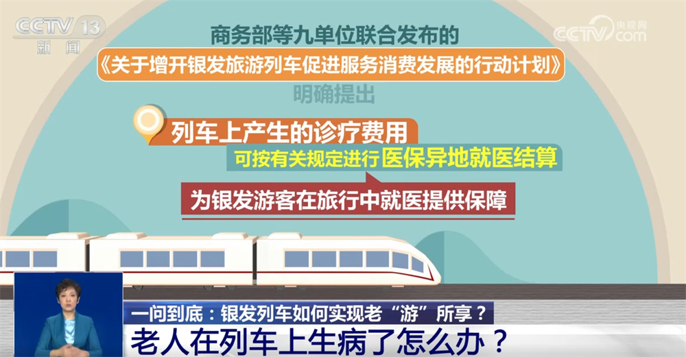 日前,商務(wù)部等九單位聯(lián)合發(fā)布的增開(kāi)銀發(fā)旅游列車的行動(dòng)計(jì)劃明確提出,列車上產(chǎn)生的診療費(fèi)用可按有關(guān)規(guī)定進(jìn)行醫(yī)保異地就醫(yī)結(jié)算,為銀發(fā)游客在旅行中就醫(yī)提供了保障。