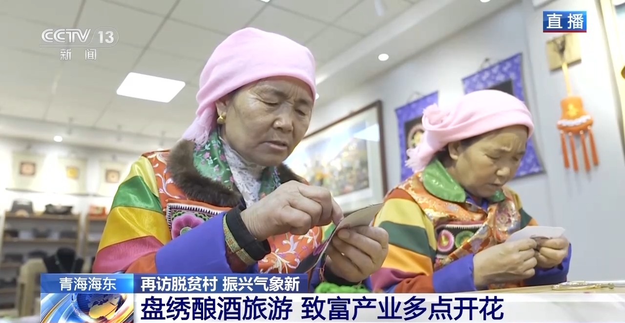 不僅是光伏發(fā)電,近幾年,村里因地制宜發(fā)展起土族盤繡、古法釀酒、鄉(xiāng)村旅游等多個(gè)致富產(chǎn)業(yè),還通過(guò)電商直播帶貨平臺(tái),推廣村里自產(chǎn)的青稞酒、中藥材等農(nóng)特產(chǎn)品,讓村民實(shí)現(xiàn)就地就近就業(yè)的同時(shí),也讓產(chǎn)品的銷路越走越遠(yuǎn)。