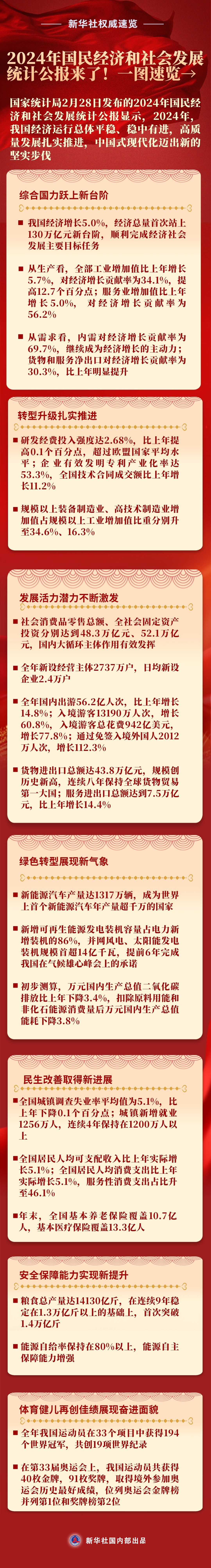 新華社權(quán)威速覽丨2024年國民經(jīng)濟和社會發(fā)展統(tǒng)計公報來了!一圖速覽→