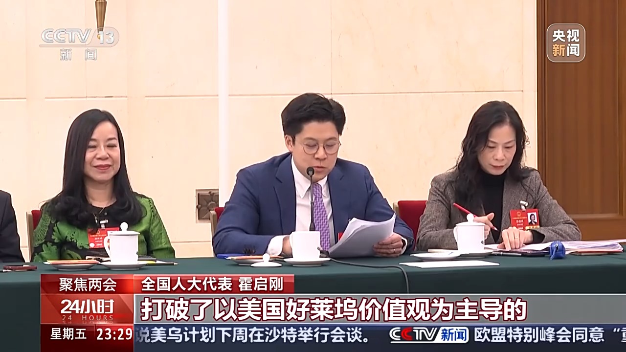 全國人大代表 霍啟剛:最近的《哪吒2》更創(chuàng)下票房歷史,打破了以美國好萊塢價值觀為主導(dǎo)的這種說故事的方式,成功以我們中國的故事和中國的哲學(xué)感染世界的觀眾。我認(rèn)為香港可以更加用文化+的概念跟理念,在文化產(chǎn)業(yè)發(fā)展上作出更多的貢獻,更以香港國際橋梁和傳統(tǒng)優(yōu)勢,實現(xiàn)中國文化抱團出海等,讓文化事業(yè)和文化產(chǎn)業(yè)得以相輔相成,把香港發(fā)揮成中華文化產(chǎn)業(yè)中的“金融港”和“出口港”。