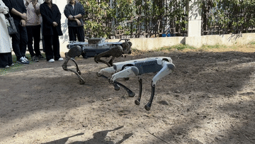 楊?。ㄗ蠖┖屯聻榭蛻粽故疽豢钚袠I(yè)應用四足機器人。