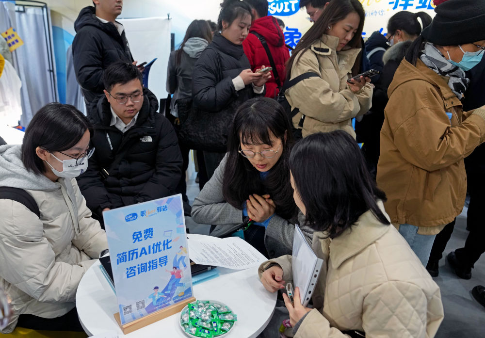 在上海一個大型招聘會現(xiàn)場,工作室團隊為求職者進行簡歷優(yōu)化指導。