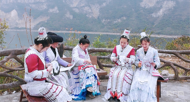 化屋村,原名“化屋基”,意為“懸崖下的村寨”,地處烏江上游六沖河河畔。整個(gè)村子被險(xiǎn)峻的群山和河水環(huán)繞,過去因交通閉塞、產(chǎn)業(yè)缺乏,陷入深度貧困,當(dāng)?shù)貍鹘y(tǒng)特色手藝——化屋苗繡也是“藏在深閨人未識(shí)”。