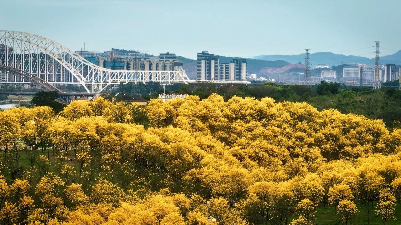 金燦燦的風鈴木進入觀賞旺季