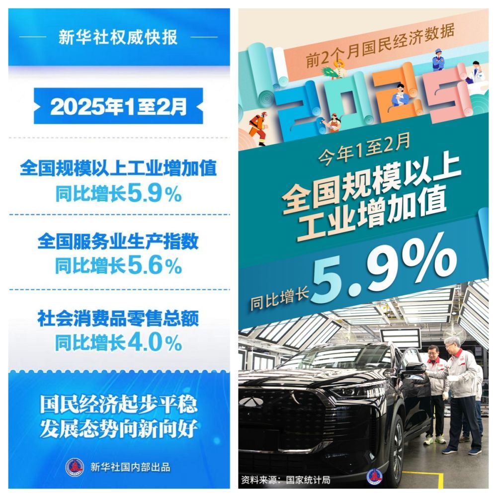 今年前2個月,工業(yè)服務業(yè)較快增長,消費投資繼續(xù)改善,就業(yè)形勢總體穩(wěn)定,新質生產(chǎn)力成長壯大,經(jīng)濟運行起步平穩(wěn),發(fā)展態(tài)勢向新向好,展現(xiàn)中國經(jīng)濟強大韌性。