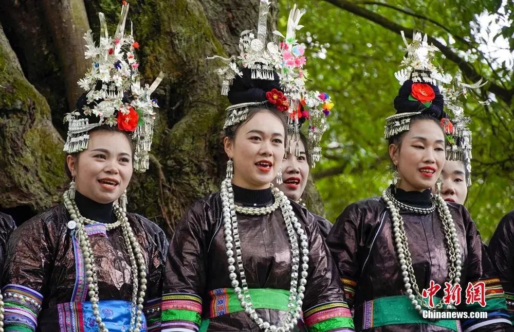貴州榕江縣侗族同胞在古榕樹下唱侗族大歌。周光勝 攝