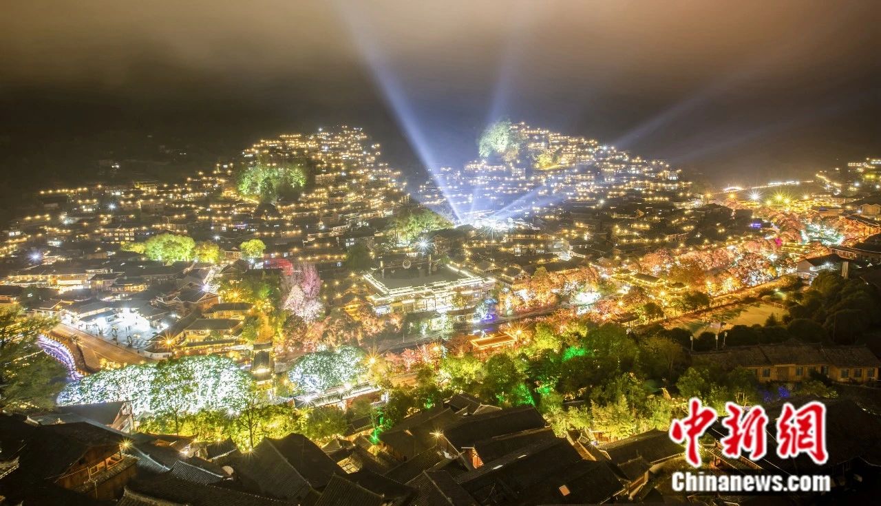 貴州西江千戶苗寨夜景。 唐哲 攝
