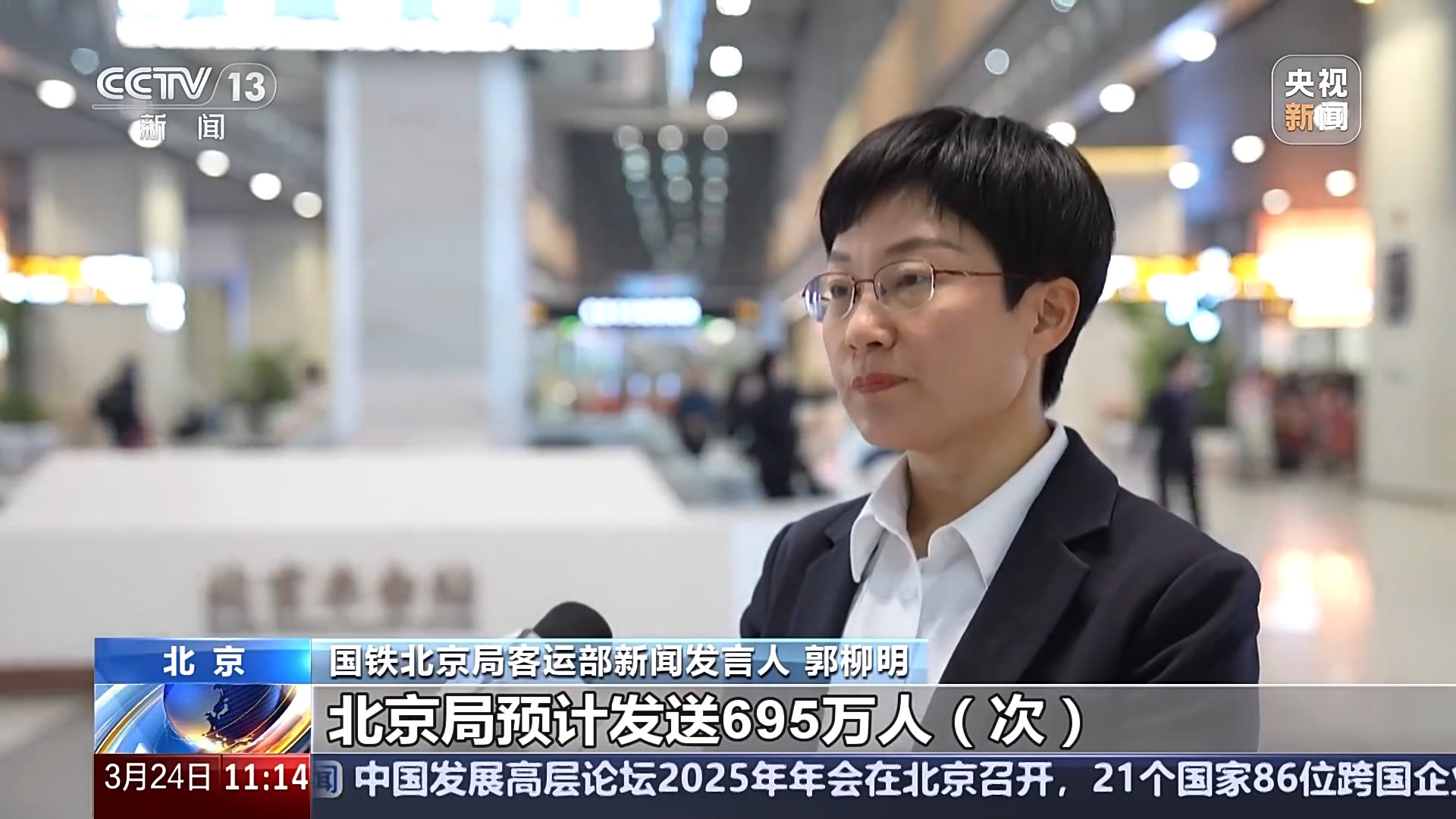 國(guó)鐵北京局客運(yùn)部新聞發(fā)言人 郭柳明:清明運(yùn)輸期間5天,北京局預(yù)計(jì)發(fā)送695萬(wàn)人次,同比增幅4.6%。高峰日在4月4日,預(yù)計(jì)發(fā)送165萬(wàn)人次。客流主要集中在濟(jì)南、太原、鄭州、沈陽(yáng)、青島、西安以及北京至天津、保定、石家莊、張家口往返間。