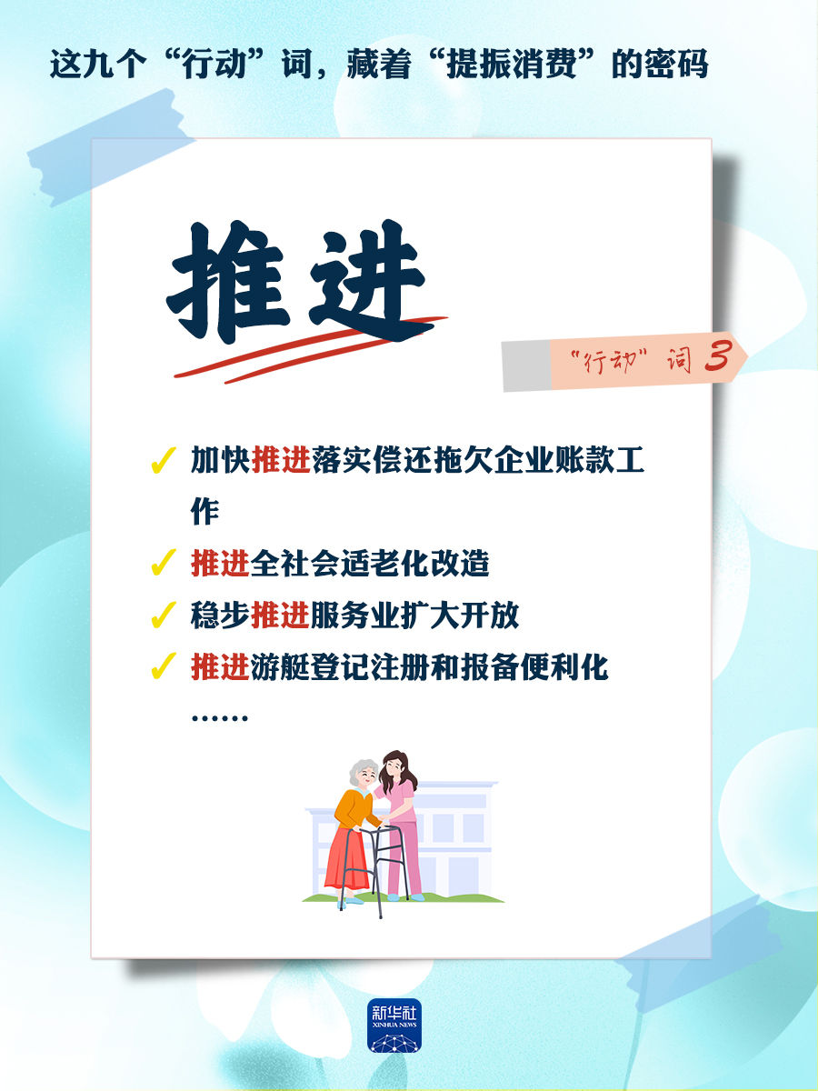 我們梳理出“方案”中使用頻率較高的九個“行動”詞,從這些不同維度的“行動”詞中,解讀“專項行動”的豐富內(nèi)涵和政策“含金量”,看看哪些是立竿見影、吹糠見米的惠民行動?哪些是需要加力擴(kuò)圍、加快補齊的消費短板?還有哪些是需要有序推進(jìn)、以點帶面的消費“新”點?