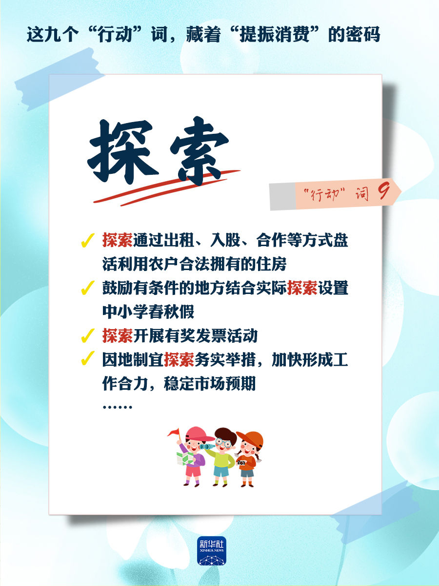 近日,中共中央辦公廳、國務(wù)院辦公廳印發(fā)《提振消費專項行動方案》。“方案”中涉及的政策措施,所用“行動”詞各不相同,有的是實施、開展、推進(jìn);有的是擴(kuò)大、完善、加大;還有的是鼓勵、探索、試點……