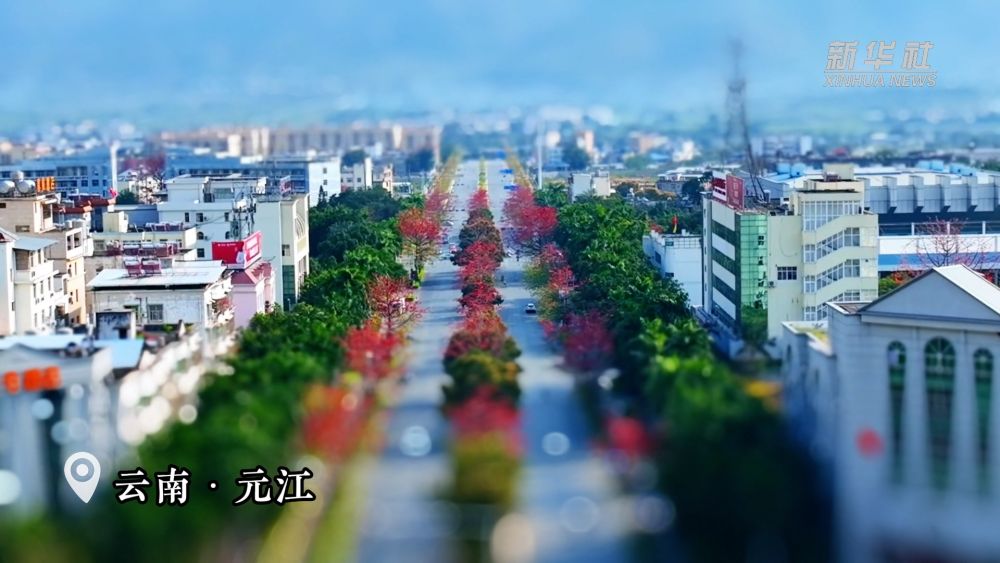 元江攀枝花正值盛花期,火紅的花朵綴滿枝頭,如一團(tuán)團(tuán)燃燒的火苗。