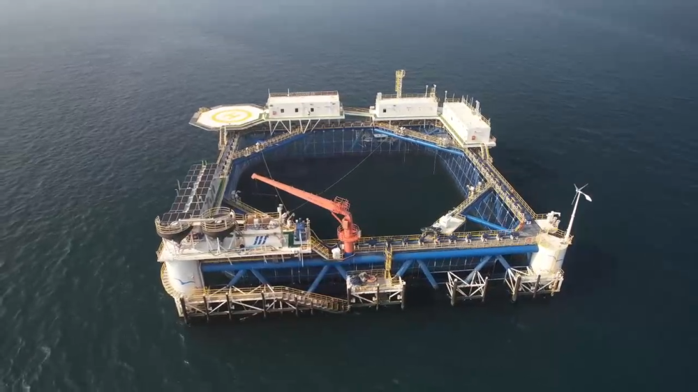 在距離大陸岸線42海里的海域坐落著這樣的深遠(yuǎn)海智能網(wǎng)箱平臺(tái),網(wǎng)箱長(zhǎng)寬均為68米,布設(shè)500個(gè)監(jiān)測(cè)點(diǎn),配備了聲納、激光雷達(dá)等設(shè)備。這樣的1個(gè)網(wǎng)箱每年能產(chǎn)出100萬(wàn)條魚(yú),只需要4個(gè)工人來(lái)操作。