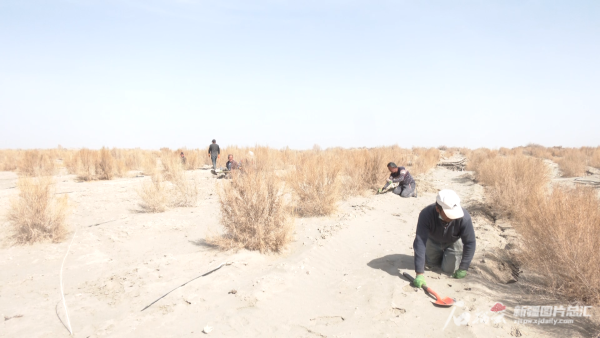 仲春時節(jié),地處南疆的阿克蘇,正是麥苗返青、杏花盛開的時候。這幾天,在塔克拉瑪干沙漠邊緣阻擊戰(zhàn)北部前沿的沙雅縣、阿瓦提縣、新和縣等縣(市),廣大黨員干部及各族群眾正開展大規(guī)模植樹造林。一排排新植的梭梭苗迎風(fēng)挺立,煥發(fā)出勃勃生機。