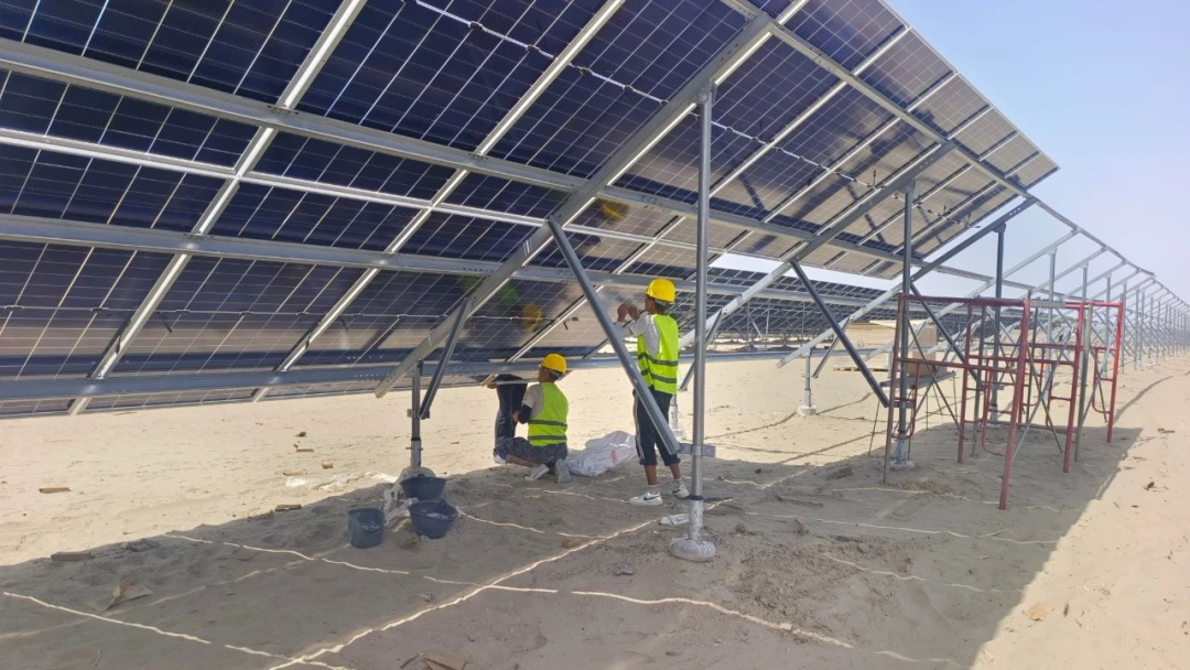 3月28日,在中國電建集團新疆分公司新能源公司沙雅縣25萬千瓦光伏項目施工現(xiàn)場,工人們正緊張地安裝光伏板,周圍草方格的鋪設(shè)及梭梭的栽種也在同步開展當(dāng)中。該項目施工負責(zé)人郝澤權(quán)說,光伏發(fā)電助力機電井抽取沙漠地表百米以下的微咸水灌溉梭梭林,解決了長期以來沙漠植綠缺水難題,實現(xiàn)生態(tài)與經(jīng)濟的雙重收益。