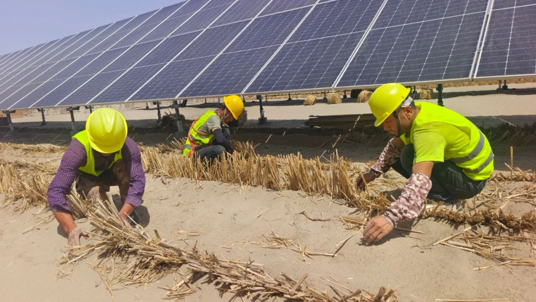 光伏板不僅可以作為發(fā)電設(shè)備,其鋪助設(shè)施還能有效降低地表風(fēng)速、減少風(fēng)蝕,進而穩(wěn)定沙土、防止沙丘移動。此外,光伏板能有效減少地表水分蒸發(fā),有利于沙漠植被生長。地區(qū)通過招商引資方式,引進中電建集團公司,在沙雅縣規(guī)劃實施“光伏+治沙”2萬畝,建設(shè)25萬千瓦光伏產(chǎn)業(yè)園區(qū)低碳轉(zhuǎn)型新能源項目。項目建成后,發(fā)電固沙一舉兩得。