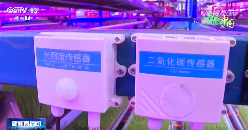 來(lái)到這個(gè)育秧車間,我們可以看到現(xiàn)在的秧苗都已經(jīng)坐上電梯了。在立體循環(huán)育秧架上,一盤(pán)盤(pán)綠油油的秧苗坐著升降梯輪流接受光照。架子上還裝有智能傳感器,把溫度、濕度等信息實(shí)時(shí)顯示在大屏上。同時(shí),還可以用手機(jī)進(jìn)行遠(yuǎn)程操控,根據(jù)秧苗長(zhǎng)勢(shì)自動(dòng)進(jìn)行補(bǔ)光、噴淋。