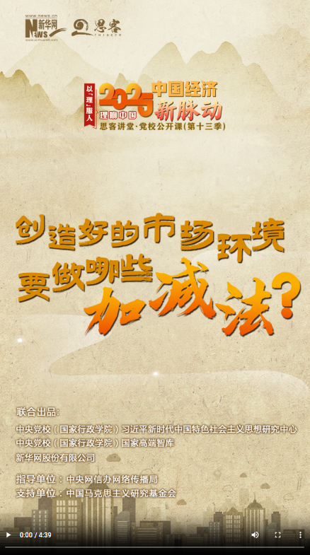 新一季“思客講堂·黨校公開(kāi)課”《理響中國(guó)·以理服人|2025中國(guó)經(jīng)濟(jì)新脈動(dòng)》,帶你讀懂2025年經(jīng)濟(jì)工作重點(diǎn)。2025年開(kāi)年以來(lái),杭州“六小龍”刷屏全網(wǎng),掀起科創(chuàng)熱潮。究其原因,離不開(kāi)當(dāng)?shù)亓己玫臓I(yíng)商環(huán)境??梢哉f(shuō),好的市場(chǎng)環(huán)境,既是城市競(jìng)爭(zhēng)的關(guān)鍵性“軟實(shí)力”,也是經(jīng)濟(jì)高質(zhì)量發(fā)展的“硬支撐”。創(chuàng)造好的市場(chǎng)環(huán)境要做哪些“加減法”?如何充分激發(fā)各類經(jīng)營(yíng)主體活力?中央黨校(國(guó)家行政學(xué)院)經(jīng)濟(jì)學(xué)教研部講師王松對(duì)此進(jìn)行解讀。