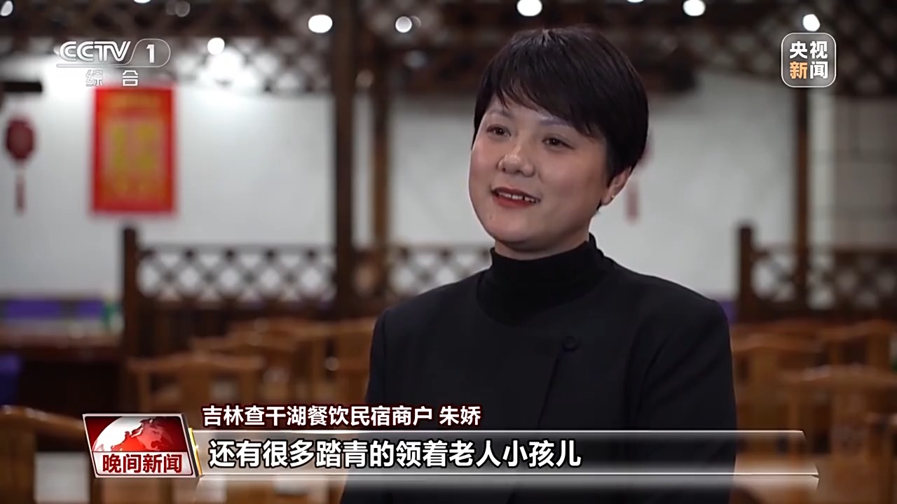 吉林查干湖餐飲民宿商戶 朱嬌:很多攝影愛(ài)好者到查干湖來(lái)拍冰面上的候鳥(niǎo)嬉戲,還有很多踏青的領(lǐng)著老人小孩兒到查干湖來(lái)游玩,我們的餐飲訂單量有所上漲。
