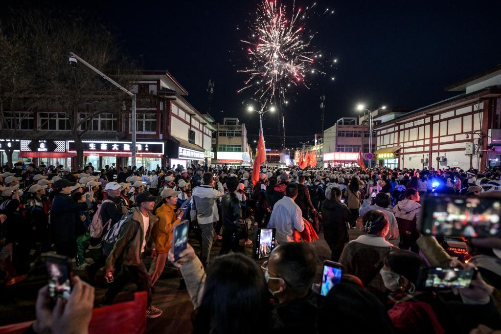 4月3日晚上8點左右,學(xué)生結(jié)束徒步返回校園,家長和市民熱情迎接。