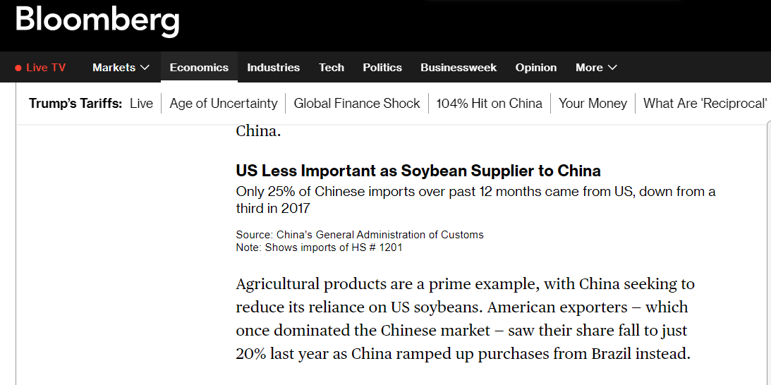 報(bào)道稱,美國(guó)作為中國(guó)大豆供應(yīng)商的重要性下降進(jìn)一步凸顯了中國(guó)的戰(zhàn)略調(diào)整。據(jù)中國(guó)海關(guān)總署數(shù)據(jù),過(guò)去12個(gè)月,中國(guó)僅25%的進(jìn)口大豆來(lái)自美國(guó),美國(guó)在中國(guó)大豆進(jìn)口市場(chǎng)份額進(jìn)一步收縮。這為北京爭(zhēng)取更多時(shí)間,直至雙方重回談判桌。