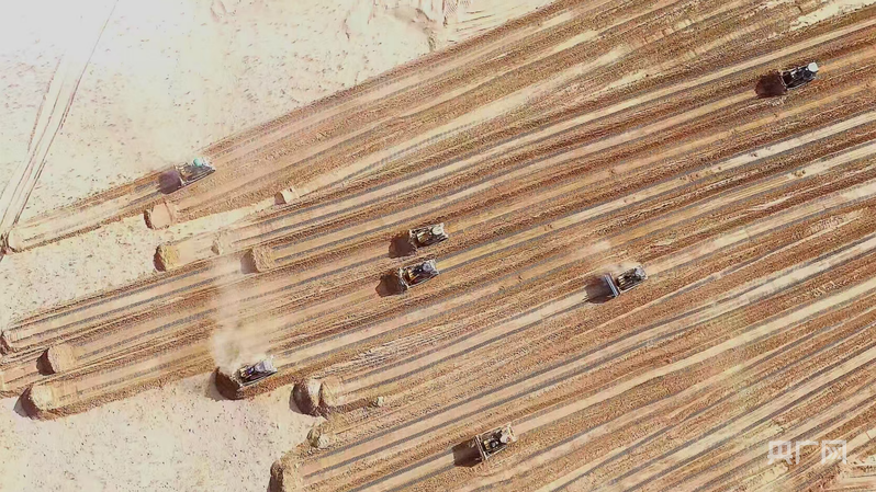 “民豐縣經(jīng)過(guò)無(wú)數(shù)次試驗(yàn),選擇蘆葦鋪設(shè)草方格沙障,帶動(dòng)了蘆葦收割產(chǎn)業(yè),參與收割的農(nóng)牧民人均增收7740元左右?!辟Z磊說(shuō)。