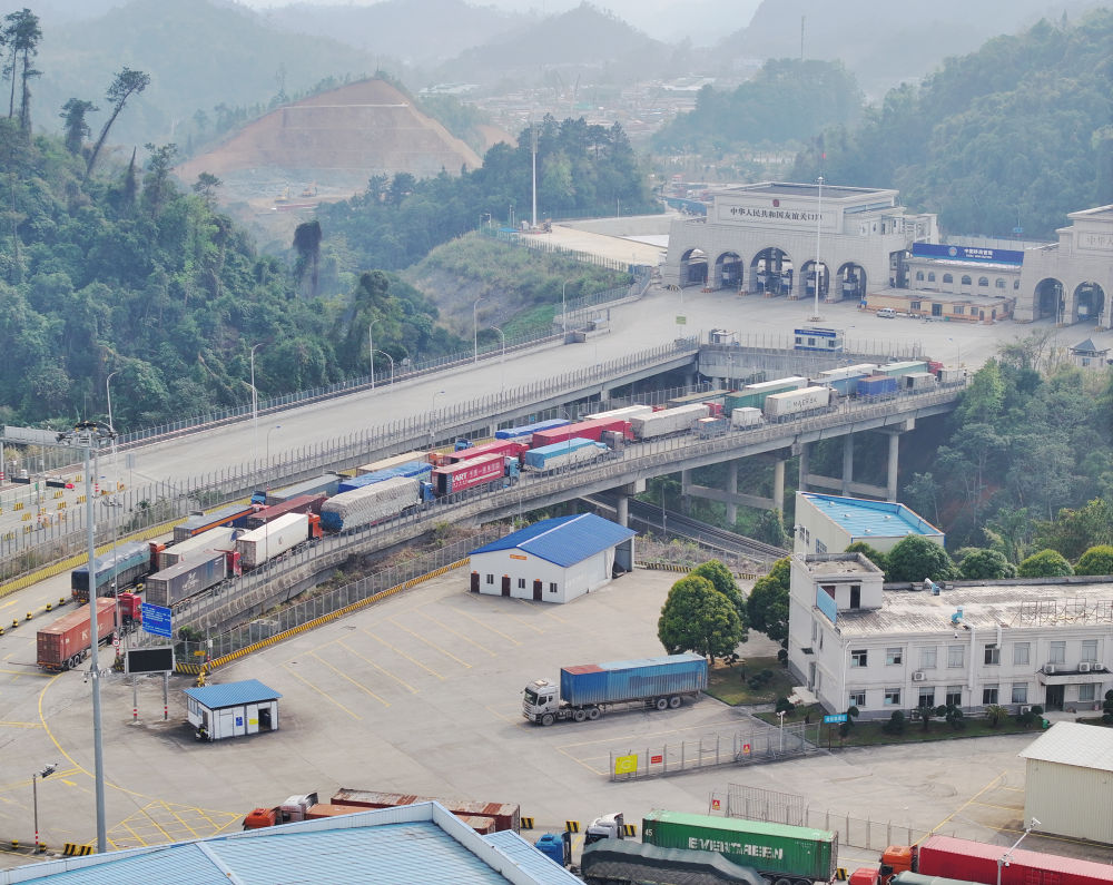 這是2025年3月1日拍攝的廣西憑祥友誼關(guān)口岸(無人機照片)。 新華社記者周華攝
