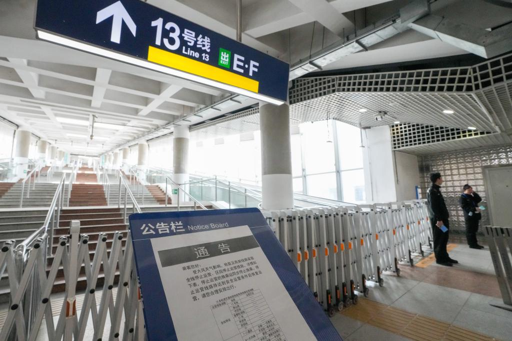 4月12日,北京地鐵西直門站13號線換乘入口張貼了部分軌道交通線路因大風(fēng)天氣停運的通知。當(dāng)日,我國北方多地出現(xiàn)大風(fēng)降溫天氣。新華社記者 鞠煥宗 攝