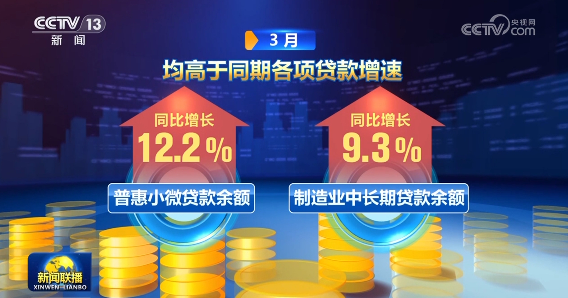 貸款同比多增,信貸結(jié)構(gòu)也出現(xiàn)不少亮點。3月,普惠小微貸款余額、制造業(yè)中長期貸款余額分別同比增長12.2%、9.3%,均高于同期各項貸款增速。