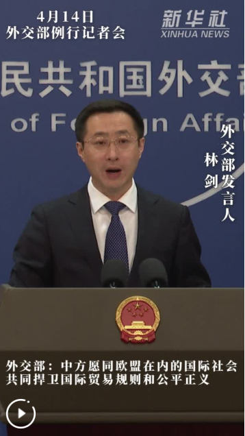 新華社北京4月14日電(記者劉楊)外交部發(fā)言人林劍14日表示,美方將關(guān)稅作為極限施壓、謀取私利的武器,嚴(yán)重?fù)p害包括中國和歐盟在內(nèi)的世界各國利益。中方愿同包括歐盟在內(nèi)的國際社會一道,共同捍衛(wèi)國際貿(mào)易規(guī)則和公平正義。