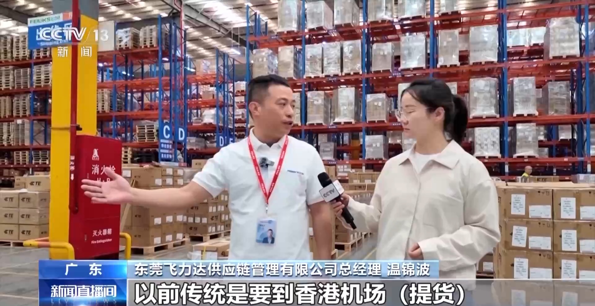 東莞飛力達(dá)供應(yīng)鏈管理有限公司總經(jīng)理 溫錦波:以前傳統(tǒng)是要到香港機(jī)場(chǎng)提貨,現(xiàn)在不用拆包、不用申報(bào),直接拉到空港中心,再進(jìn)行一站式的進(jìn)口申報(bào)。在我們家門口500米,就可以提回來(lái)倉(cāng)庫(kù),非常方便。