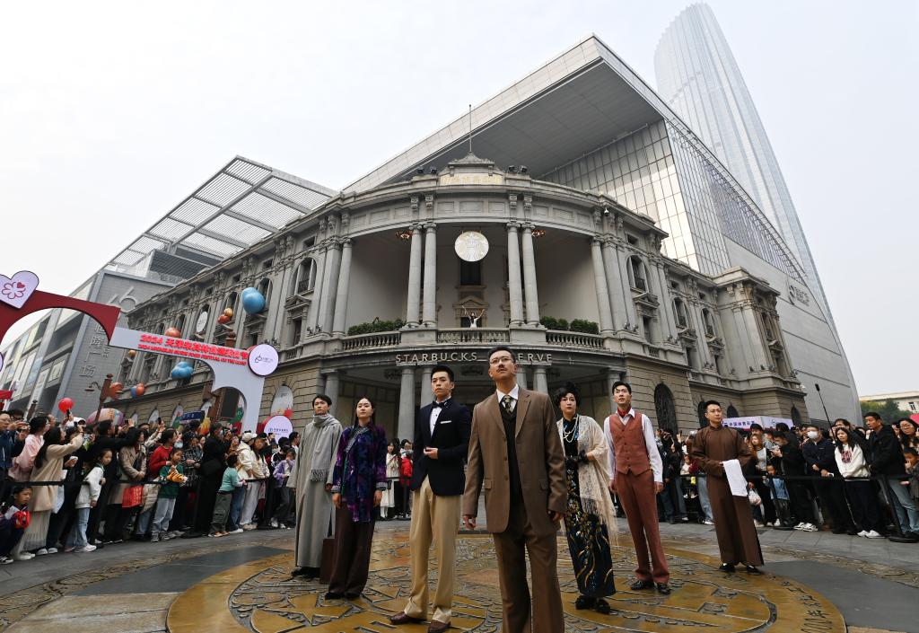 “我們此前還在百年建筑空間創(chuàng)新打造城市舞臺(tái),帶來‘空中音樂劇快閃演出’,打開沿街一側(cè)窗口,配合炫目的光影效果和演員表演,為商圈注入活力?!碧旖蚝懵V場相關(guān)工作人員說。
