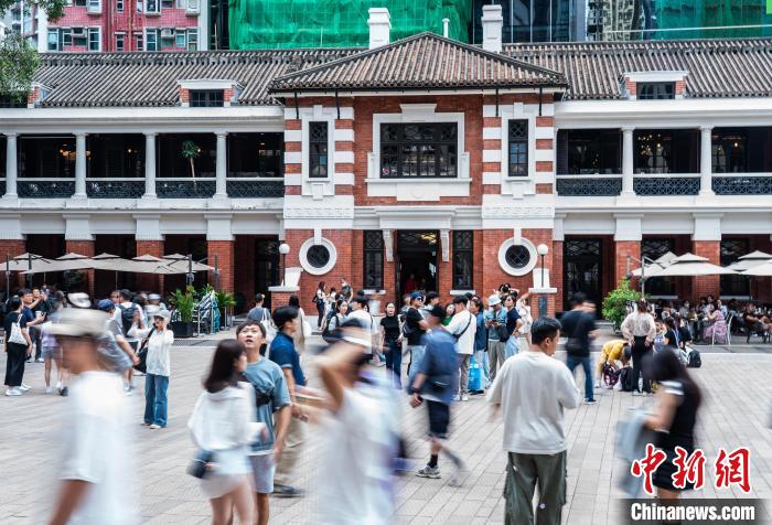 5月3日,眾多游客在香港集古跡及藝術(shù)館于一身的建筑群“大館”參觀游覽。 中新社記者 侯宇 攝