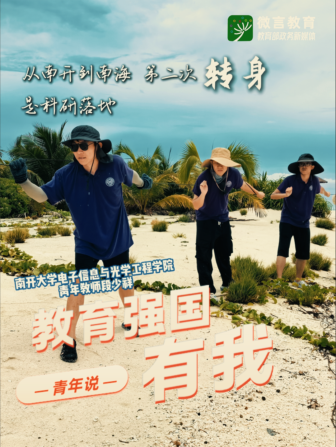 習(xí)近平總書記強(qiáng)調(diào),全面推進(jìn)強(qiáng)國建設(shè)、民族復(fù)興偉業(yè),正是年輕一代展示才華、大顯身手的好時候。教育強(qiáng)國建設(shè),青年何為?五四青年節(jié)之際,教育部政務(wù)新媒體啟動“教育強(qiáng)國,有我!”網(wǎng)絡(luò)主題宣傳活動,推出“青年說(奮進(jìn)篇)”系列,展現(xiàn)青年師生以青春之我、奮斗之我投身教育強(qiáng)國建設(shè)的生動實踐。今天,跟教育小微通過1個微視頻和1組海報,來看南開大學(xué)新青年用三次“轉(zhuǎn)身”寫下的青春答案——