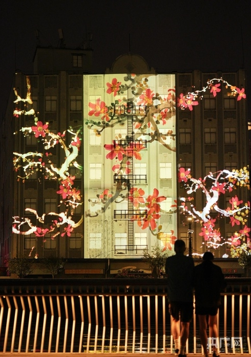 第三屆“閃亮·上海”靜安國際光影展光影秀(央廣網(wǎng)發(fā) 上海市靜安區(qū)供圖)