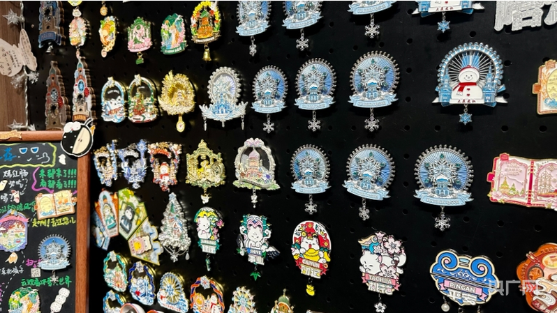 假日期間,各大文博場館、歷史文化街區(qū)等把握住機遇,推陳出新,創(chuàng)新形式,滿足游客多元化需求。哈爾濱中央大街將城市文化與AR技術(shù)相融合,推出了兼具科技感與城市文化的文創(chuàng)產(chǎn)品?!斑@款冰箱貼在去年的基礎(chǔ)上做了一個全新升級,結(jié)合AR技術(shù),通過手機‘掃一掃’功能,可以看到一個動態(tài)視頻,實現(xiàn)裸眼3D的效果。”中央大街龍粵魔法列車總經(jīng)理于洋說。