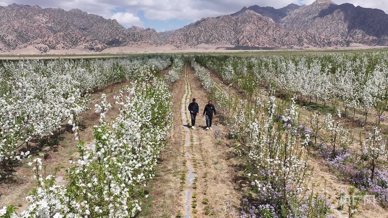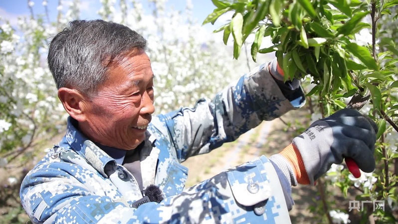 步入內(nèi)蒙古巴彥淖爾市烏拉特前旗白彥花鎮(zhèn)塔漢其嘎查林果產(chǎn)業(yè)園,大片果樹迎來最美花期,微風(fēng)拂過,花香沁人心脾,果園里村民高忠標(biāo)正專注地修剪著果樹。“我今年60多歲了,在這里打工五六年了,一個月能掙五六千塊錢,挺好的?!?/p>