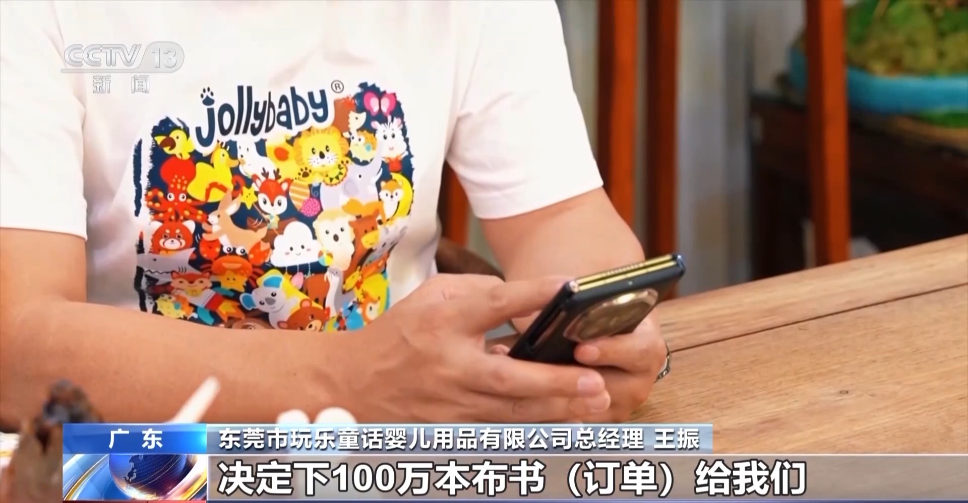 東莞市玩樂童話嬰兒用品有限公司總經理 王振:到晚上12點多他們就發(fā)信息給我,決定在我們這里下100萬本布書訂單,當時我們大家非常非常興奮。