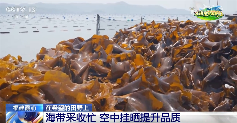 福建寧德市霞浦縣被譽(yù)為“中國(guó)海帶之鄉(xiāng)”,是我國(guó)海帶的主產(chǎn)區(qū)之一。這幾天,當(dāng)?shù)氐?5萬畝海帶迎來豐收,養(yǎng)殖戶們忙著將成品海帶收獲上岸,再運(yùn)送到晾曬場(chǎng)晾曬,形成了獨(dú)特的“空中曬場(chǎng)”。
